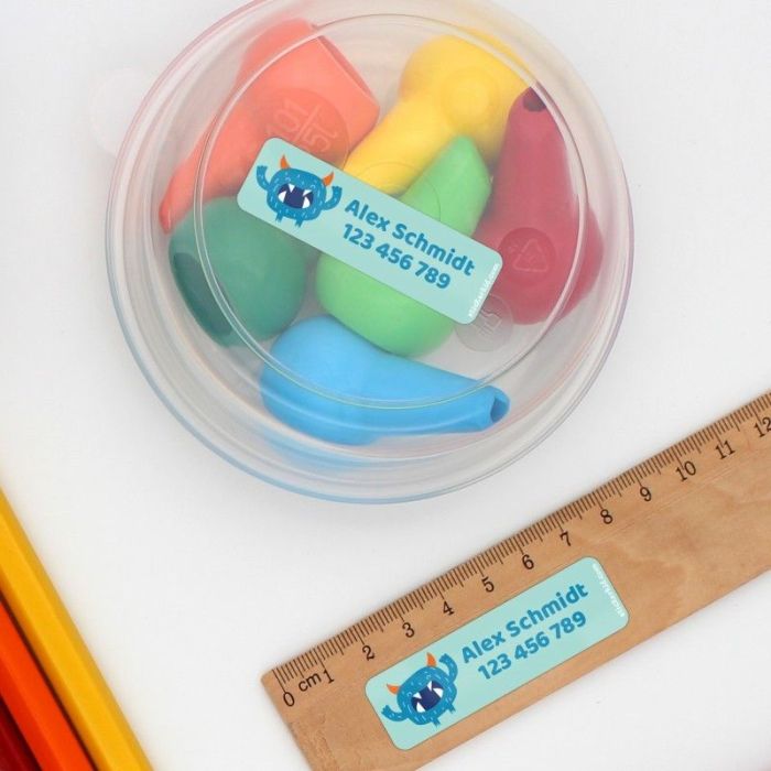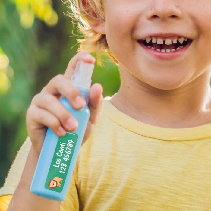 The size of this label allows you to include your kid's name and telephone number, for example.