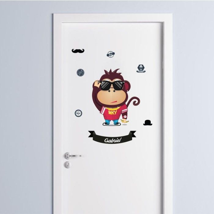 The cool hipster monkey decal set contains 1 x Hipster Monkey, 1 x name banner, 1 x mustache, 1 x hat, 4 x vintage sticker.