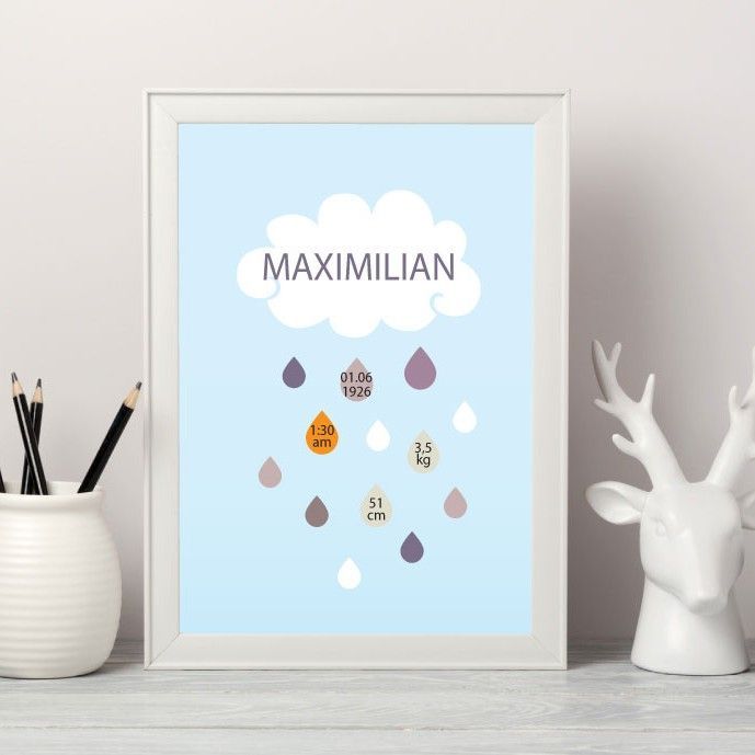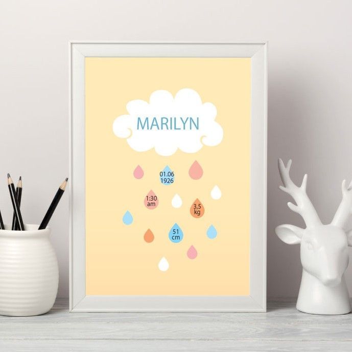 Keep all those special details of your little-one with this cute and very unique poster. Personalize it with the name of your baby, date and time, weight and size at birth. Choose your favorite color scheme and get ready to receive a beautiful memory that will last a lifetime.