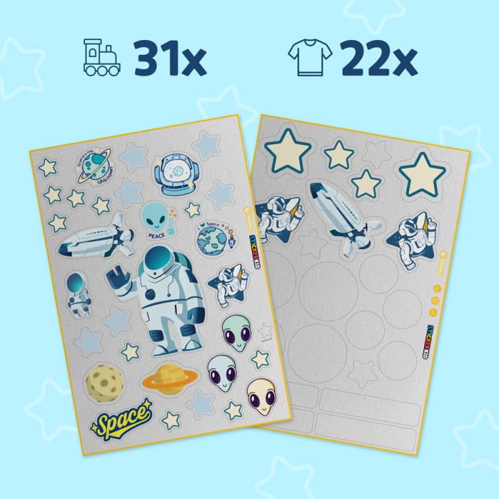 Add some fun reflecting astronaut labels to create a bigger reflecting surface. Your children will love labeling the objects and see them reflecting in the dark.