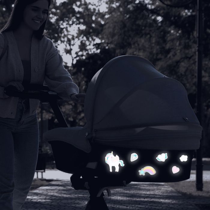 Add some fun reflecting unicorn labels to create a bigger reflecting surface. Your children will love labeling the objects and see them reflecting in the dark.