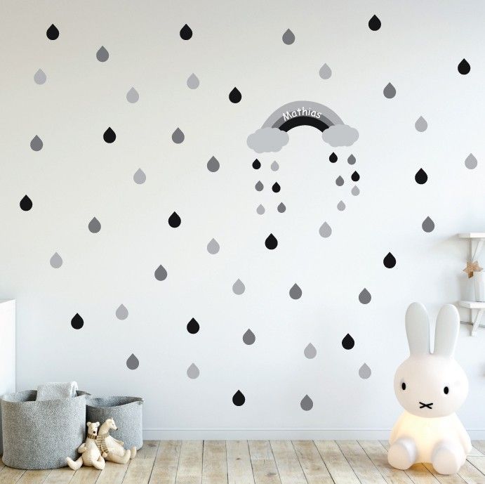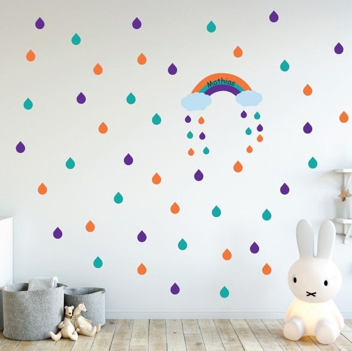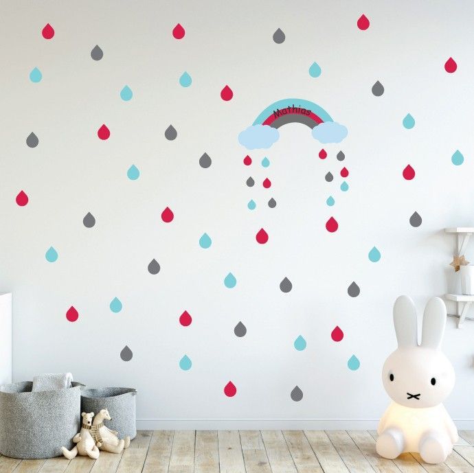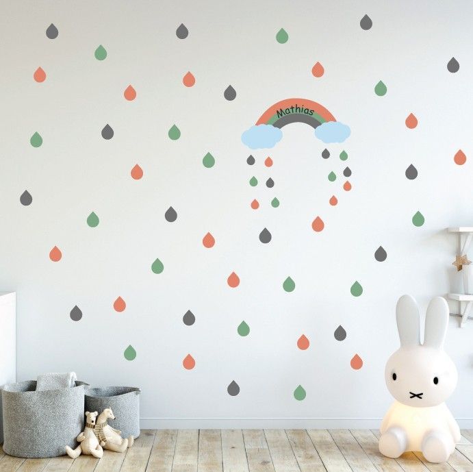 - Just choose your favourite colour and add your child’s name or a short message. A few days later, you will receive 72 cool wall decals to stick on your child’s wall, creating an atmosphere especially made for your toddler. The design consists of 46 round labels (2.5 in x 2.5 in) plus a large name banner, which can be placed on the wall, the door or above the bed or a table.