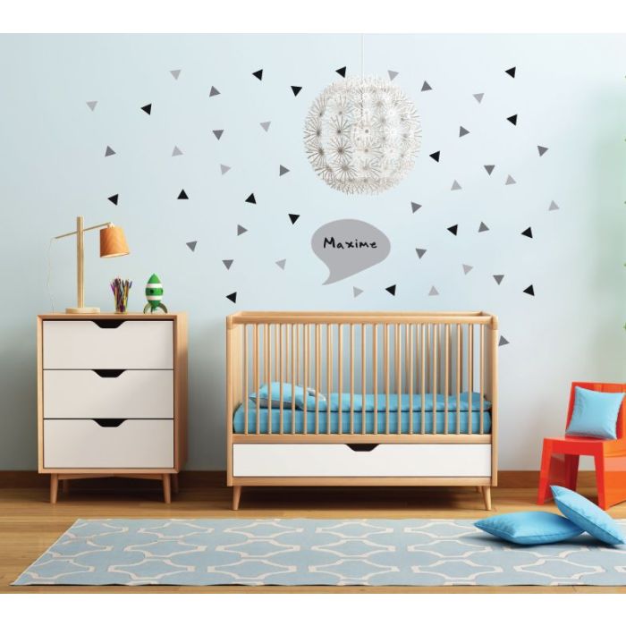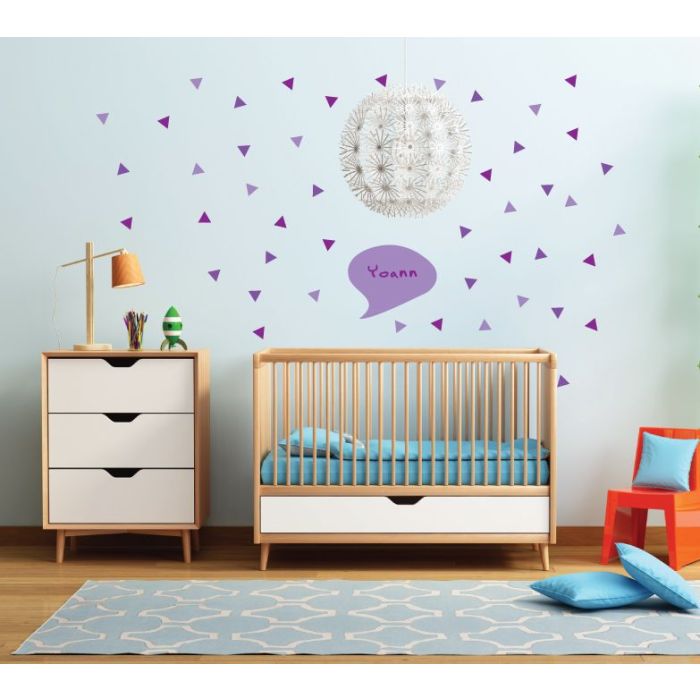 Just choose your favourite colour and add your child’s name or a short message. A few days later, you will receive 46 cool wall decals to stick on your child’s wall, creating a unique haven, especially made for your toddler. The design consists of 46 round labels (2.5 in x 2.5 in) plus a large name banner, which can be placed on the wall, the door or above the bed or a table.